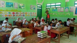 Dalam kesempatan tersebut, Serda Sahroni tidak hanya hadir sebagai pendamping, namun juga aktif berinteraksi dengan para siswa, memberikan semangat, serta edukasi ringan tentang pentingnya menjaga kesehatan melalui pola makan bergizi.