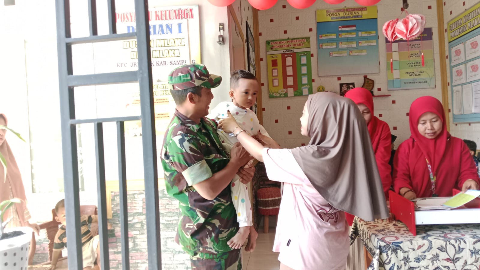 Jrengik – Dalam upaya meningkatkan pelayanan kesehatan masyarakat, khususnya ibu dan balita, Babinsa Koramil 0828/06 Jrengik, Serda Agung, melaksanakan kegiatan pendampingan Posyandu bersama bidan desa di Desa Mlaka, Kecamatan Jrengik, Kabupaten Sampang, pada hari ini.