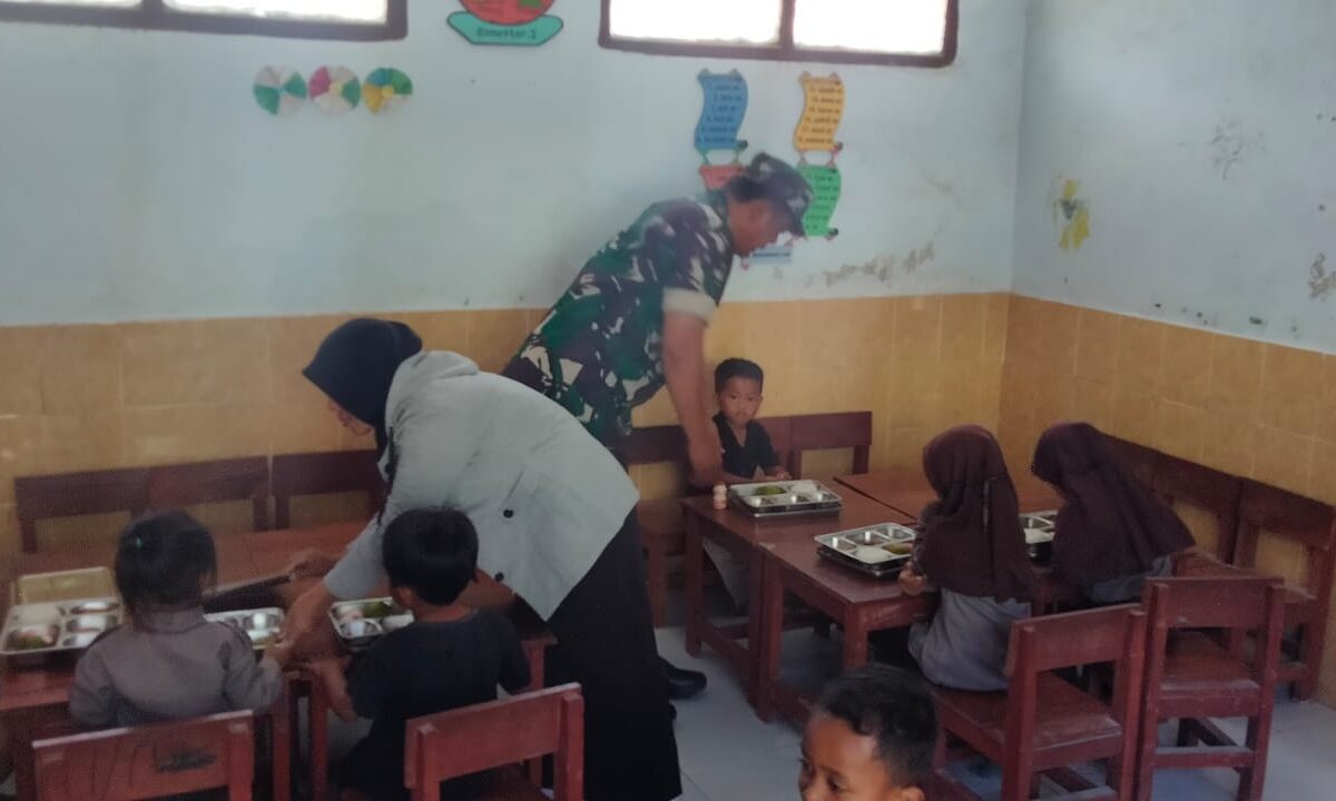 Menebar Gizi, Babinsa Sokobanah Dampingi Distribusi Makanan Bergizi