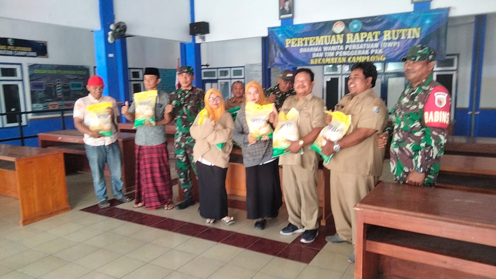 Sampang— Dalam upaya mendukung ketahanan pangan serta menekan gejolak harga di masyarakat, Babinsa Koramil 0828/02 Camplong Serma Mu’i bersama tiga orang anggota bersinergi dengan unsur Forkopimcam Camplong melaksanakan Gerakan Pangan Murah (GPM) di Kantor Kecamatan Desa Tambaan, Kecamatan Camplong, Kabupaten Sampang.