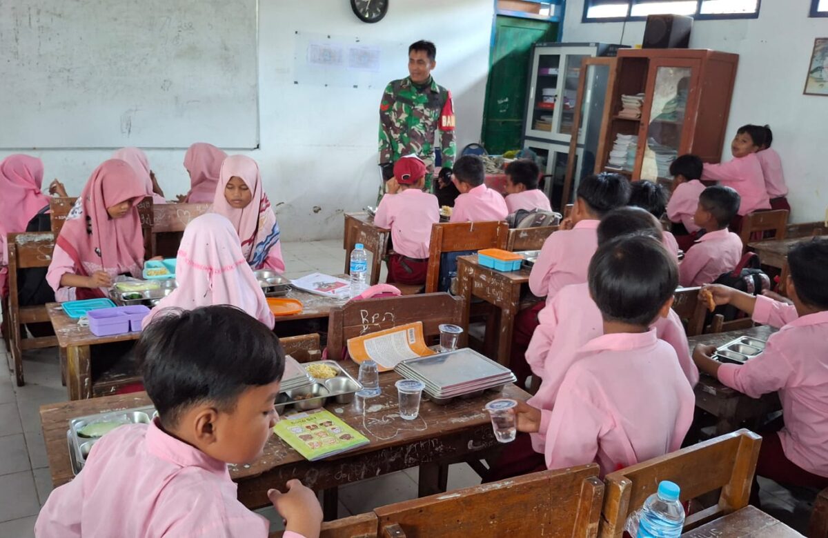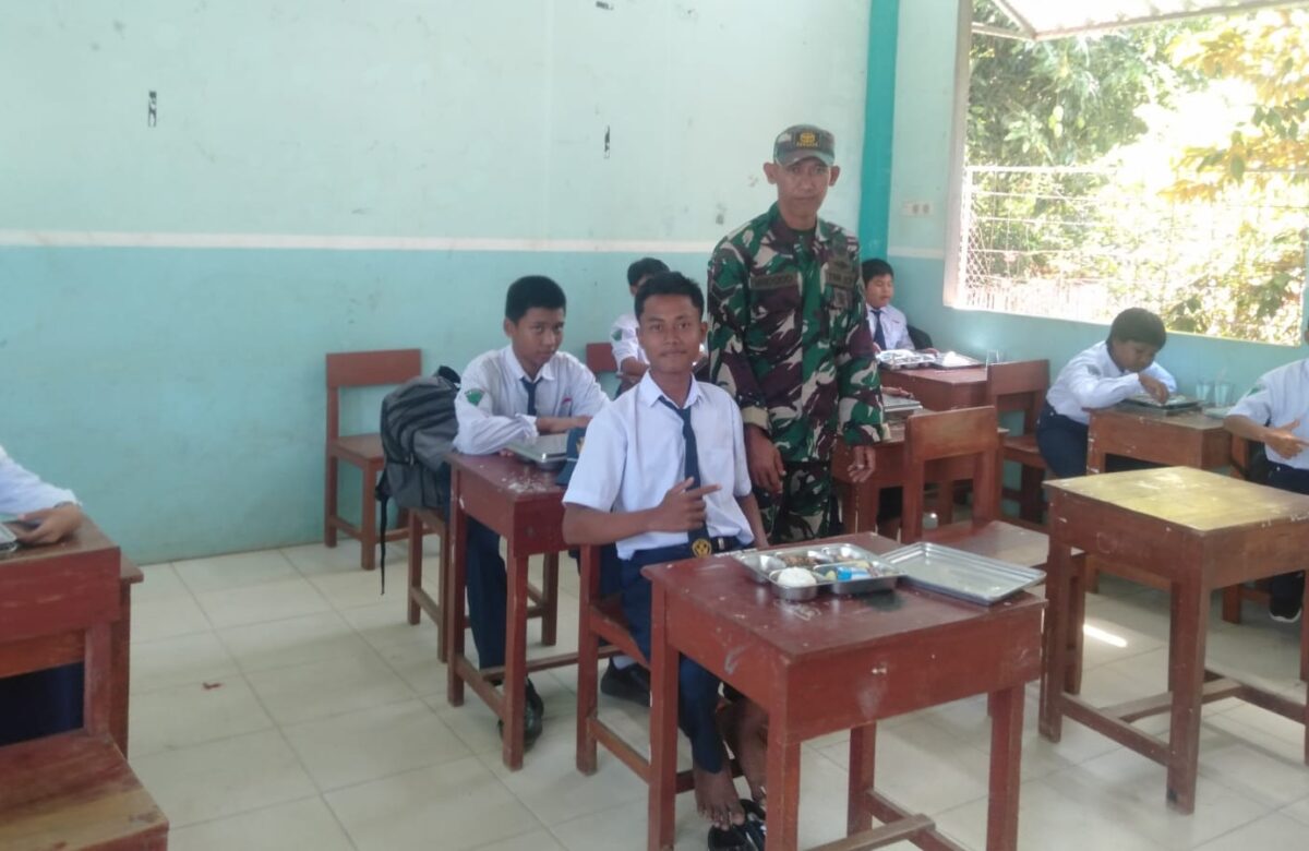 Babinsa Posramil Karang Penang Dampingi Pendistribusian Makanan Bergizi