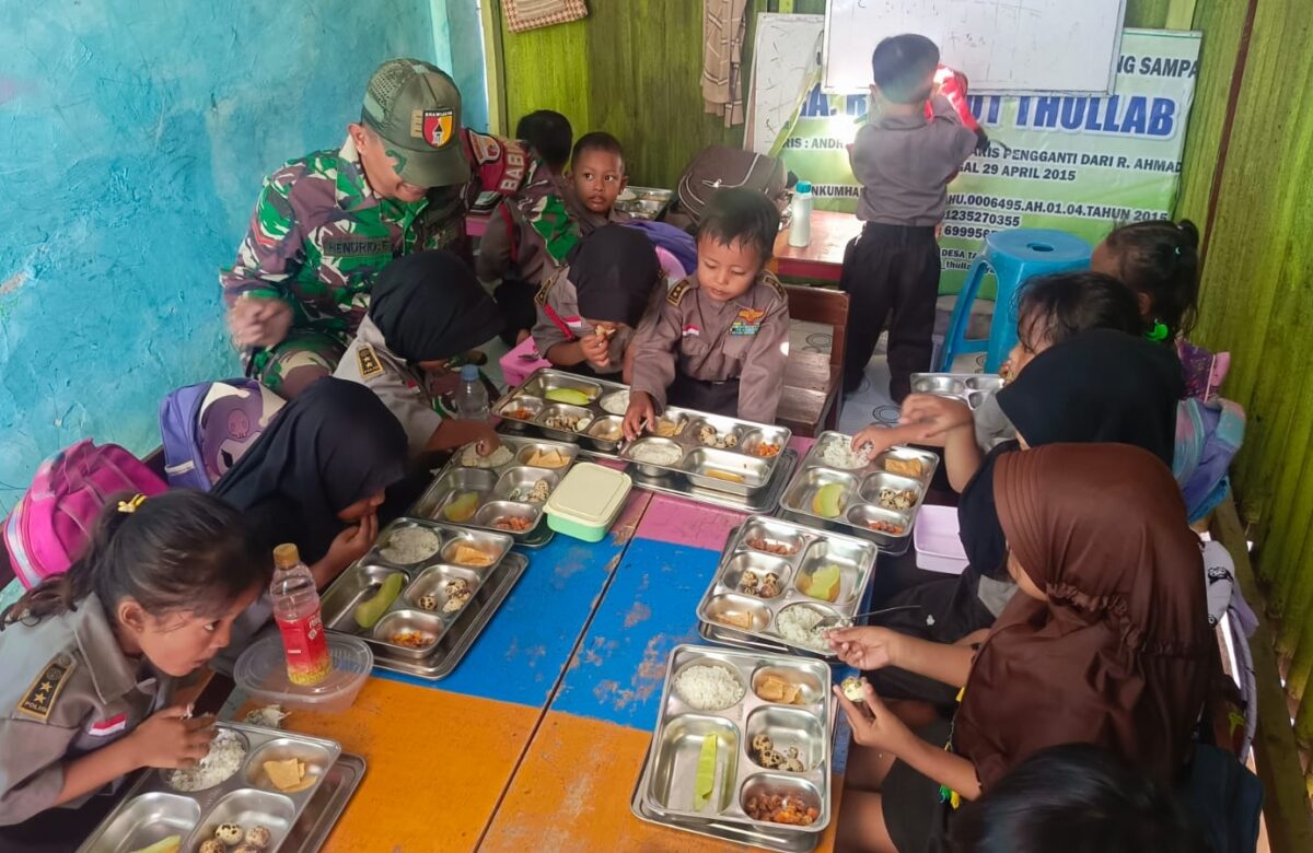 Peduli Generasi Sehat Babinsa Dampingi Program Makan Bergizi