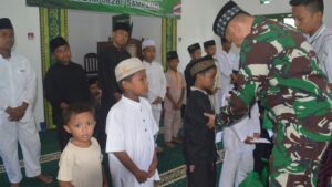 Acara dimulai dengan pembacaan ayat suci Al-Qur’an, dilanjutkan dengan doa bersama yang dipimpin oleh tokoh agama setempat. Suasana khidmat menyelimuti Masjid Al-Ikhlas saat seluruh personel TNI, anak-anak yatim, serta warga sekitar bersatu dalam munajat dan harapan untuk TNI yang semakin kuat dan rakyat yang semakin sejahtera.