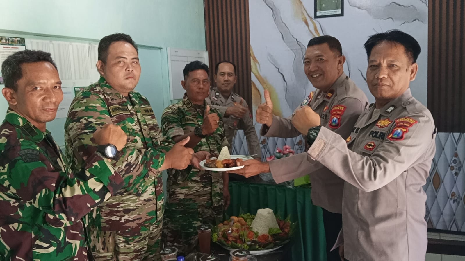 Kegiatan ditutup dengan doa bersama dan pemotongan tumpeng sebagai simbol rasa syukur dan harapan akan kekuatan sinergitas antara TNI dan Polri dalam melayani masyarakat dan menjaga kedaulatan negara.