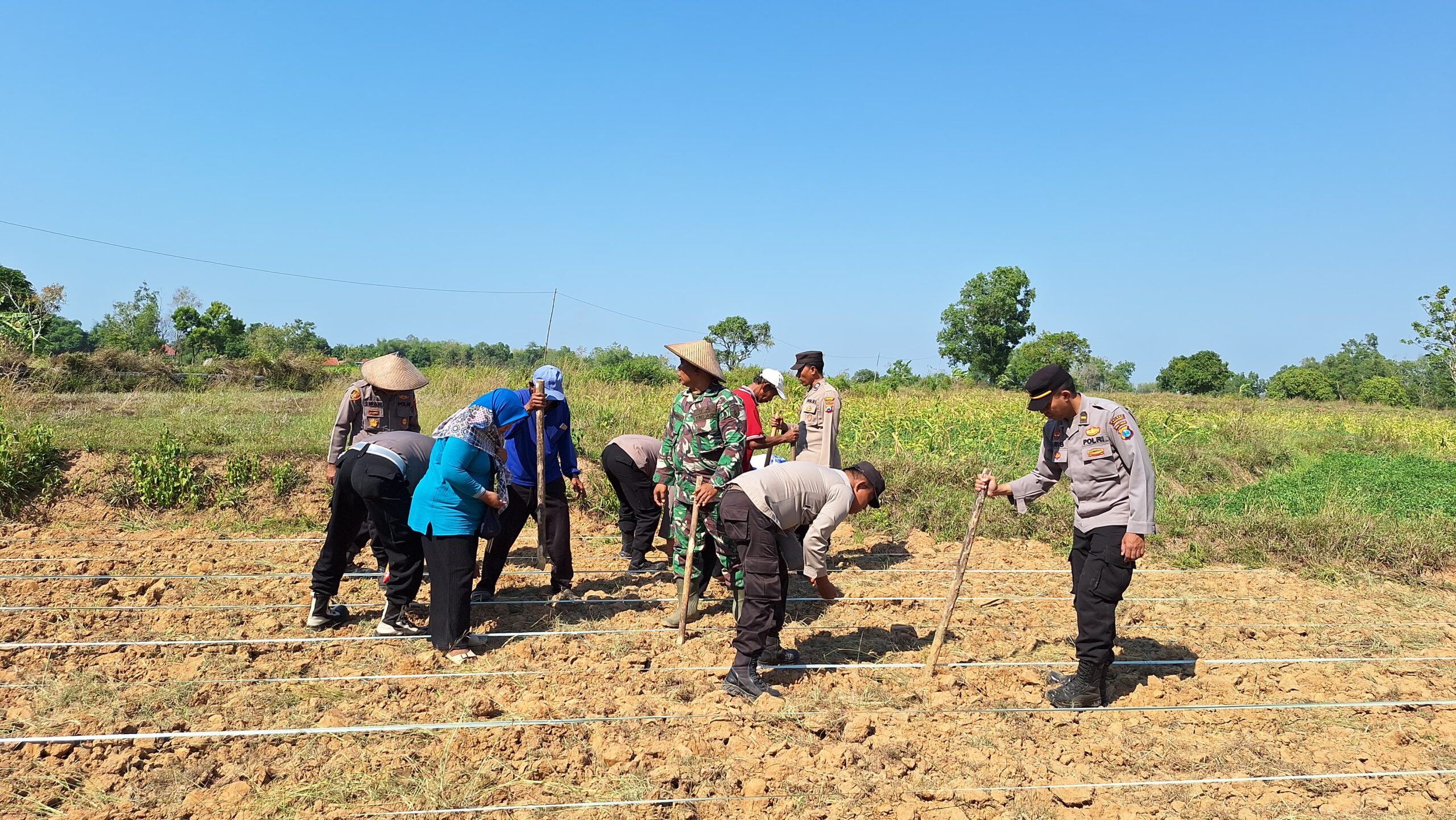 Torjun – Dalam semangat kebersamaan dan ketahanan pangan, Babinsa Koramil 0828/04 Torjun bersama Forkopimcam dan masyarakat Desa Petapan melaksanakan kegiatan penanaman jagung secara serentak pada hari ini di lahan pertanian setempat, Kecamatan Torjun, Kabupaten Sampang.