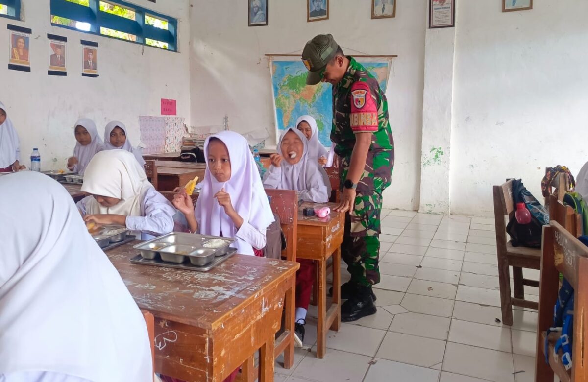 Babinsa Koramil Camplong Dampingi Siswa Nikmati Makan Bergizi