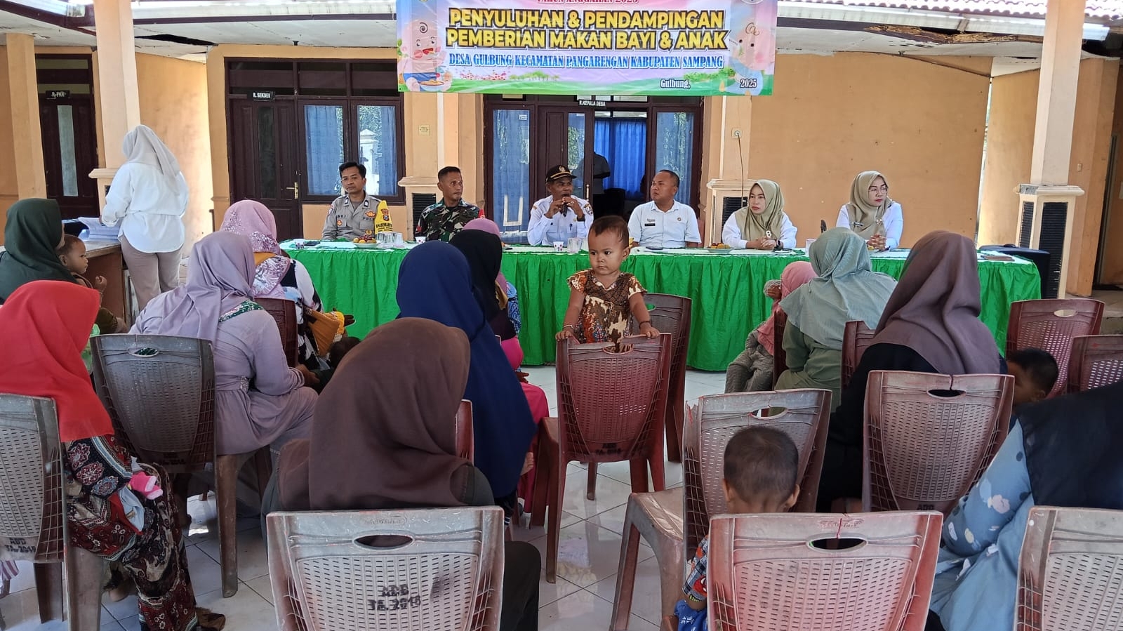 Sampang — Sebagai bentuk kepedulian terhadap kesehatan masyarakat, khususnya tumbuh kembang anak di usia dini, Babinsa Posramil 0828/13 Pangarengan Koptu Jamal turut serta dalam kegiatan Penyuluhan dan Pendampingan Pemberian Makan Bayi dan Anak (PMBA) yang digelar di Balai Desa Gulbung, Kecamatan Pangarengan, Kabupaten Sampang.