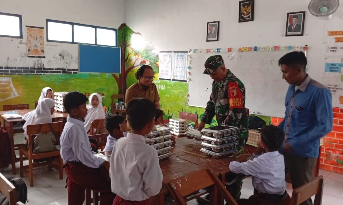Babinsa Koramil Omben Dampingi Penyaluran Makan Bergizi Gratis