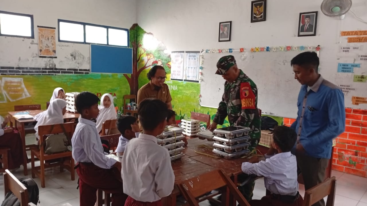 Selain mendampingi proses penyaluran, Babinsa juga turut membantu memastikan makanan yang dibagikan memenuhi standar kebersihan dan gizi. Para siswa tampak antusias dan senang menerima menu bergizi yang disiapkan oleh pihak sekolah bekerja sama dengan pemerintah desa dan dinas terkait.