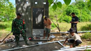 Sampang– Dalam upaya mendukung ketahanan pangan dan peningkatan produktivitas pertanian, Babinsa Koramil 0828/09 Banyuates Sertu Wagiman bersama kelompok tani (Poktan) “Kaya Sumber” melaksanakan kegiatan pembangunan rumah pompa air di Desa Nagasareh, Kecamatan Banyuates, Kabupaten Sampang.