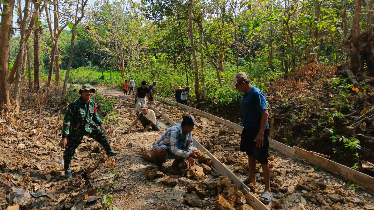 Semangat Sertu Wagiman dan Warga Terosan Bergotong Royong Cor Jalan Demi Akses Lebih Baik