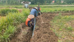 Kegiatan ini berupa pemasangan pipa aliran air ke area persawahan yang menjadi bagian dari program ketahanan pangan. Upaya tersebut bertujuan untuk memaksimalkan potensi lahan pertanian agar tetap produktif, terutama dalam menghadapi musim tanam mendatang.