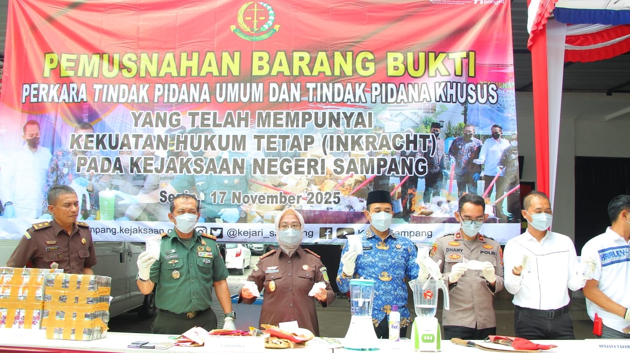 Kegiatan pemusnahan ini dipimpin langsung oleh Kepala Kejaksaan Negeri Sampang Fadilah Helmi, S.H., M.H., CSSL dan turut dihadiri oleh Wakapolres Sampang, Pengadilan Negeri Sampang, perwakilan BNNK, serta instansi terkait lainnya.