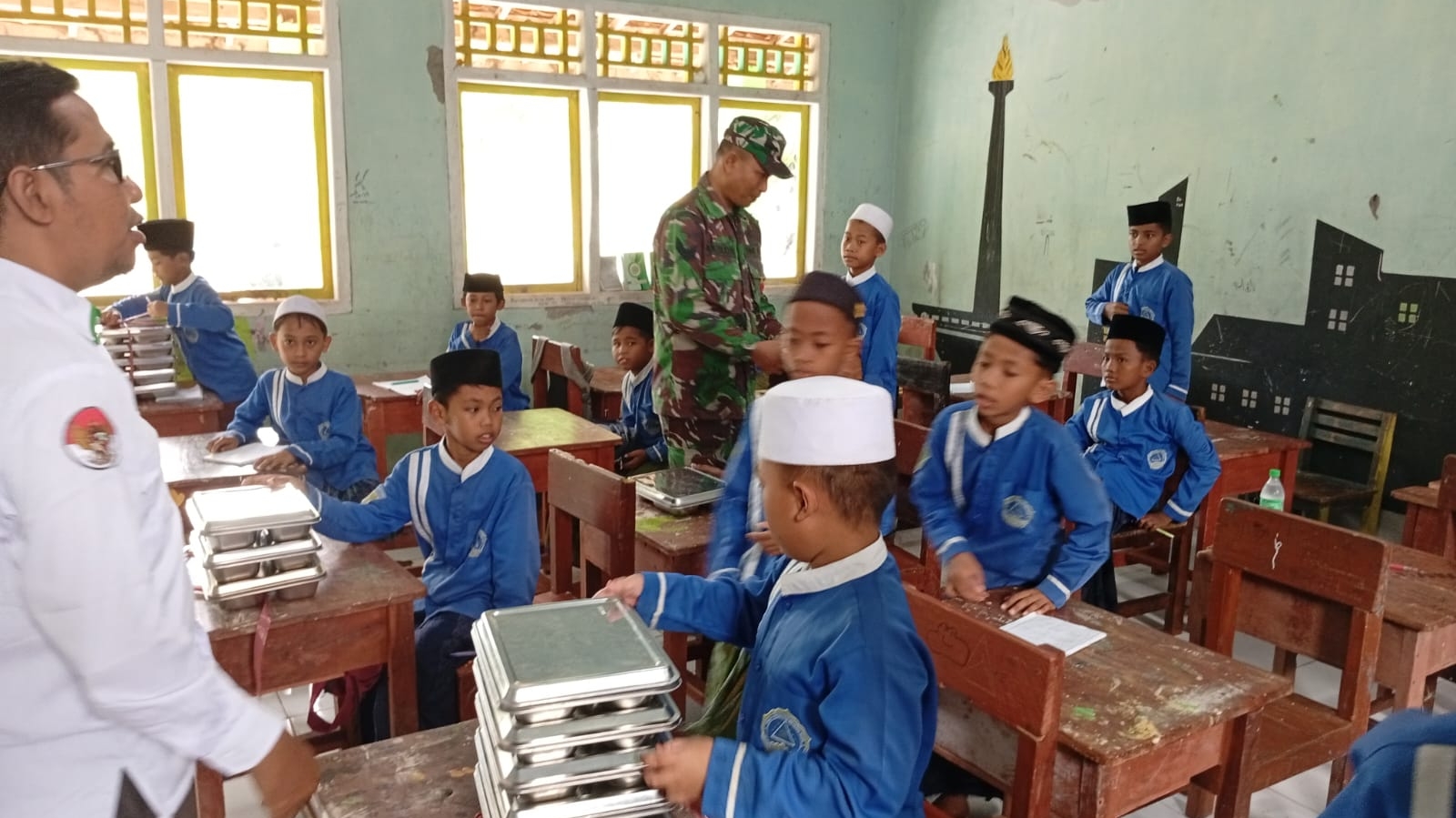 Babinsa Koramil 0828/03 Omben, Sertu Nasirudin, melaksanakan kegiatan pendampingan dalam pendistribusian Makan Bergizi Gratis (MBG) di sejumlah sekolah yang berada di Desa Karanggayam, Kecamatan Omben, Kabupaten Sampang.