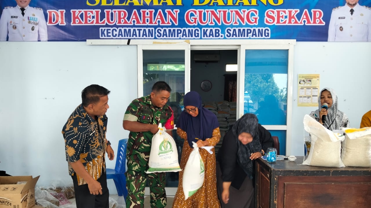 Sampang — Babinsa Koramil 0828/01 Sampang Serka Sugeng Triyono bersama Bhabinkamtibmas Kelurahan Gunung Sekar melaksanakan kegiatan pendampingan terkait pendistribusian Bantuan Pangan Pemerintah berupa beras dan minyak goreng untuk periode Oktober–November. Kegiatan ini berlangsung di Kantor Kelurahan Gunung Sekar, Jalan Imam Gozali, Sampang.