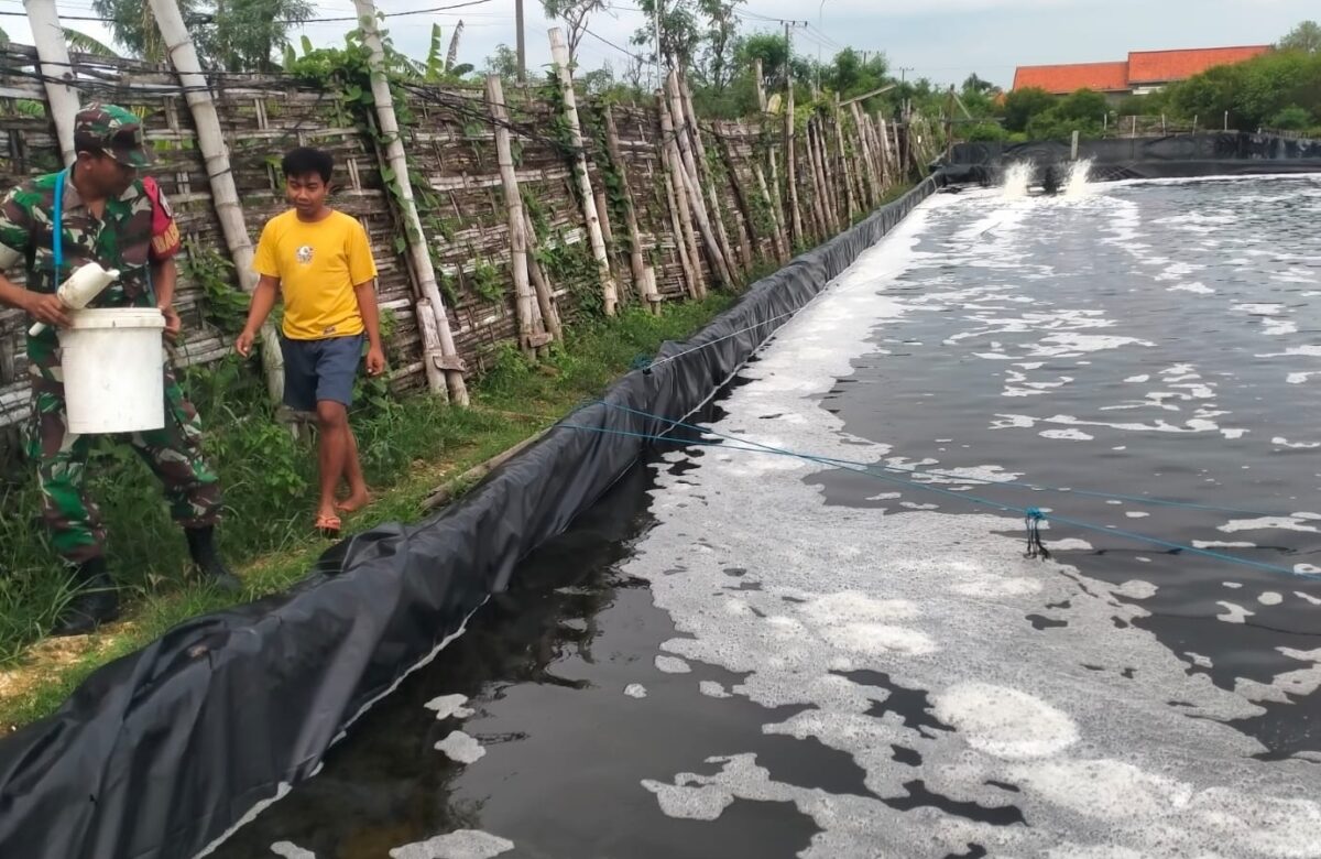 Babinsa Sreseh Bantu Warga Rawat Udang Vaname untuk