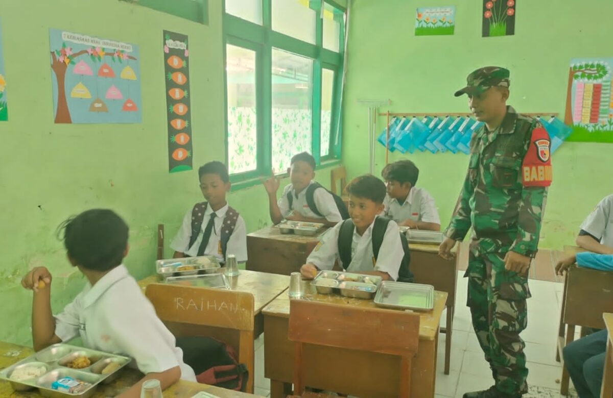 Dukung Kesehatan Pelajar, Babinsa Camplong Dampingi Distribusi Makanan