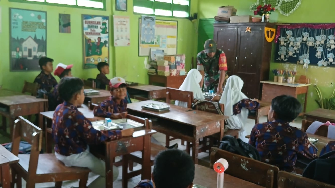 Ketapang – Babinsa Koramil 0828/07 Ketapang, Kopka Yusuf, aktif mendampingi kegiatan pendistribusian Makan Bergizi Gratis (MBG) di SDN Ketapang Timur, Desa Ketapang Timur, Kecamatan Ketapang, Sampang.