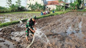 Babinsa Pangarengan Dampingi Petani Atur Irigasi Sawah untuk Sukseskan Tanam Padi di Ragung