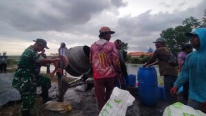 Sreseh – Dalam semangat kebersamaan dan kepedulian terhadap pembangunan desa, Babinsa Koramil 0828/05 Sreseh Serda Achmad Nadhim bersama warga binaan melaksanakan kegiatan pengecoran jalan Desa Marparan, Kecamatan Sreseh, Kabupaten Sampang.