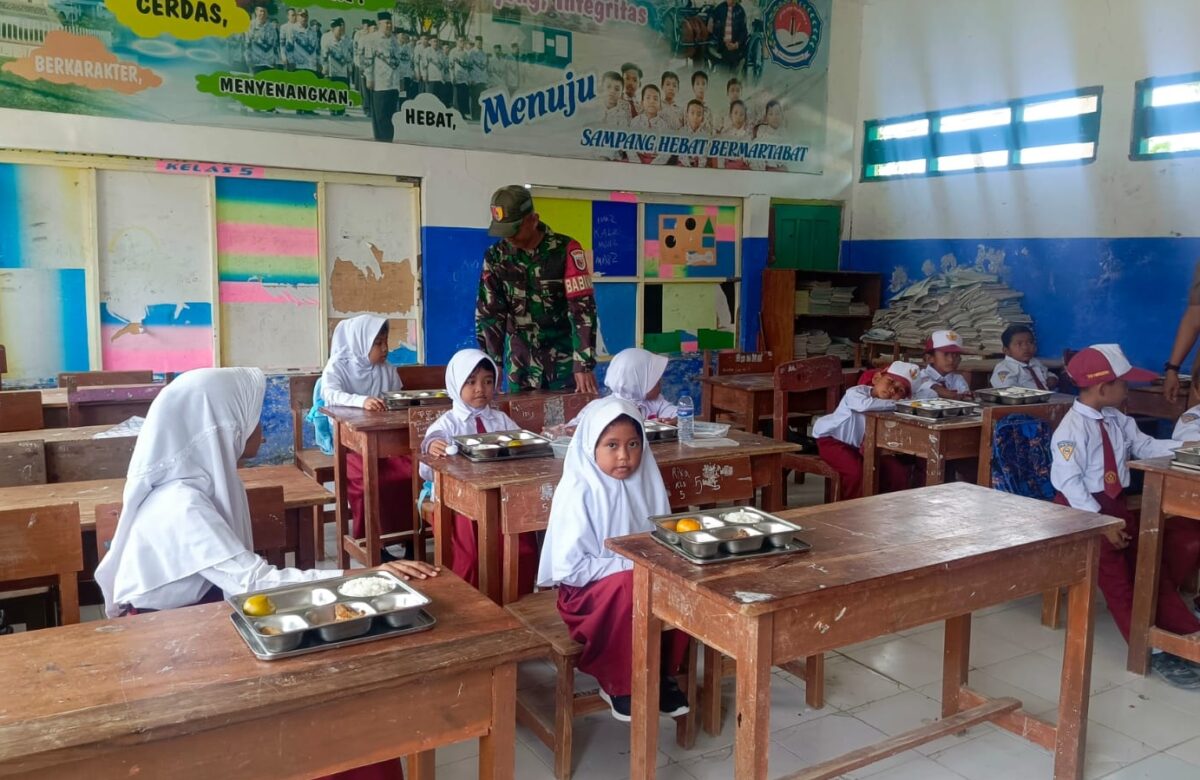 Babinsa Camplong Dampingi Pendistribusian Makan Bergizi Gratis di