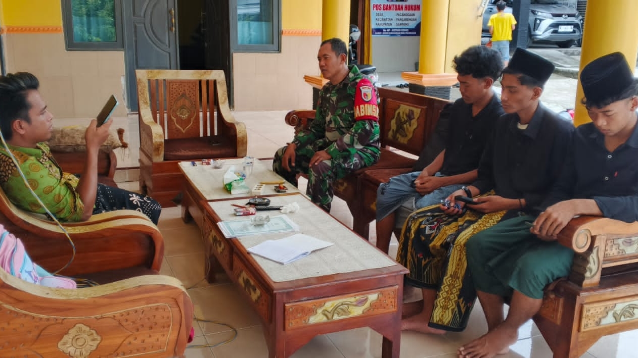 Sampang – Babinsa Posramil 0828/13 Pangarengan, Koptu Darwis, melaksanakan kegiatan Komunikasi Sosial (Komsos) bersama warga di Desa Pacangga’an, Kecamatan Pangarengan, Kabupaten Sampang.