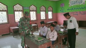 Sampang – Sebagai wujud kepedulian terhadap kesehatan dan tumbuh kembang generasi muda, Babinsa Koramil 0828/03 Omben, Sertu Nasirudin, melaksanakan kegiatan pendampingan pemberian makanan bergizi di salah satu sekolah yang berada di Desa Omben, Kecamatan Omben, Kabupaten Sampang, pada hari ini.