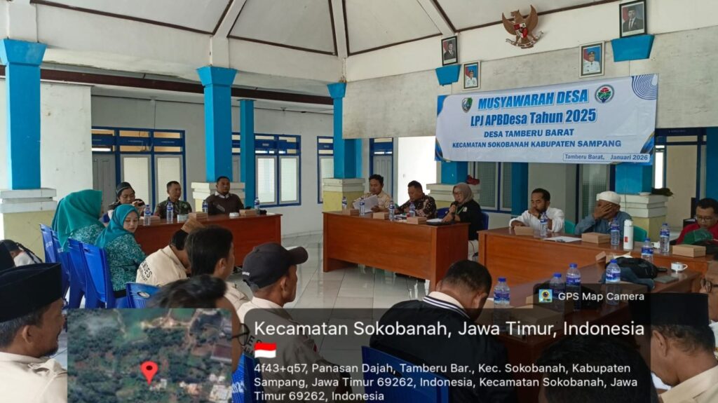 Sampang – Babinsa Koramil 0828/08 Sokobanah, Koptu Juli Eko, bersama Bhabinkamtibmas melaksanakan kegiatan pendampingan Musyawarah Desa (Musdes) Laporan Pertanggungjawaban (LPJ) APBDes yang bertempat di Desa Tamberuh Barat, Kecamatan Sokobanah, Kabupaten Sampang.