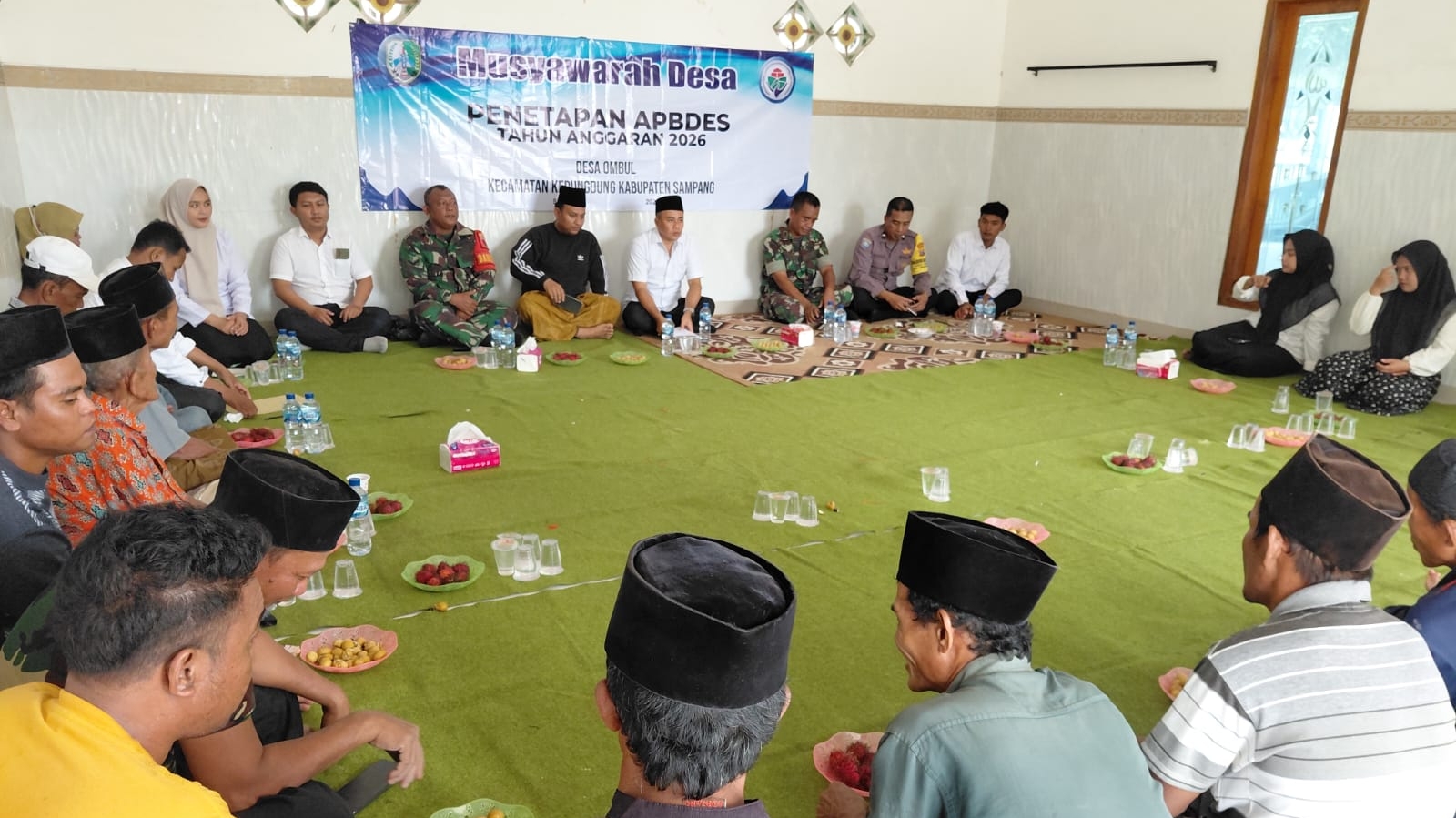 Sampang – Batuud Koramil 0828/10 Kedungdung, Peltu Imam Wahyudi, bersama anggota menghadiri Musyawarah Desa (Musdes) Penetapan Anggaran Pendapatan dan Belanja Desa (APBDes) Tahun Anggaran 2026 yang dilaksanakan di Balai Desa Ombul, Kecamatan Kedungdung, Kabupaten Sampang.