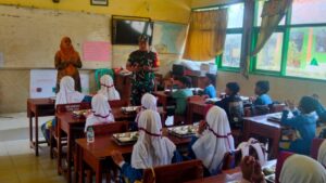 Sampang – Babinsa Koramil 0828/01 Sampang, Sertu Teguh, melaksanakan pendampingan Program Makan Bergizi Gratis (MBG) di SDN 1 Dalpenang, Kecamatan/Kabupaten Sampang, sebagai bentuk dukungan TNI terhadap peningkatan gizi dan kesehatan anak usia sekolah.(6/2/26)
