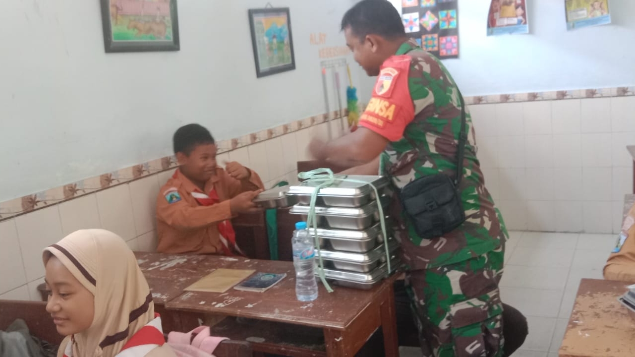 Serka Sugeng Triyono menyampaikan bahwa kehadiran Babinsa dalam kegiatan tersebut merupakan bentuk dukungan TNI AD terhadap program pemerintah di bidang kesehatan dan pendidikan. “Kami hadir untuk membantu kelancaran pendistribusian serta memastikan anak-anak menerima makanan bergizi dengan baik,” ujarnya.