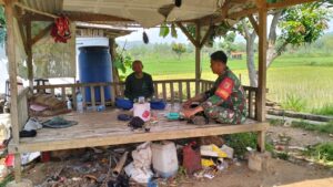 Sampang – Babinsa Koramil 0828/09 Banyuates, Sertu Wagiman, melaksanakan kegiatan Komunikasi Sosial (Komsos) bersama para petani di Desa Kembang Jeruk, Kecamatan Banyuates, Kabupaten Sampang, sebagai upaya mempererat hubungan silaturahmi serta mendukung ketahanan pangan wilayah.