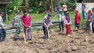 Dalam suasana penuh kebersamaan, Babinsa dan warga turun langsung ke lahan untuk menanam jagung secara gotong royong. Kegiatan tersebut tidak hanya bertujuan meningkatkan hasil pertanian masyarakat, tetapi juga menjadi sarana memperkuat semangat kebersamaan serta kepedulian terhadap pemanfaatan lahan produktif.