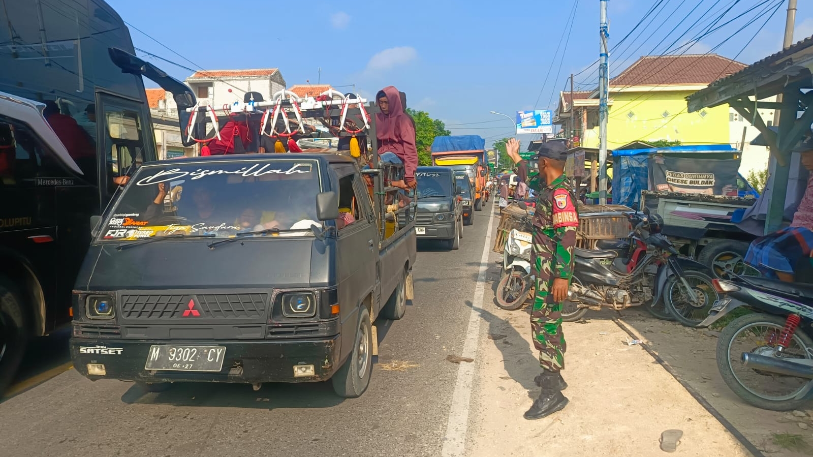 Kegiatan ini dilakukan sebagai respon atas meningkatnya aktivitas masyarakat di sekitar pasar yang kerap menimbulkan kepadatan kendaraan, terutama pada jam-jam sibuk. Dengan penuh tanggung jawab dan semangat pengabdian, Babinsa bersama personel kepolisian turun langsung ke lapangan untuk membantu mengurai kemacetan serta mengatur arus kendaraan agar tetap tertib dan lancar.