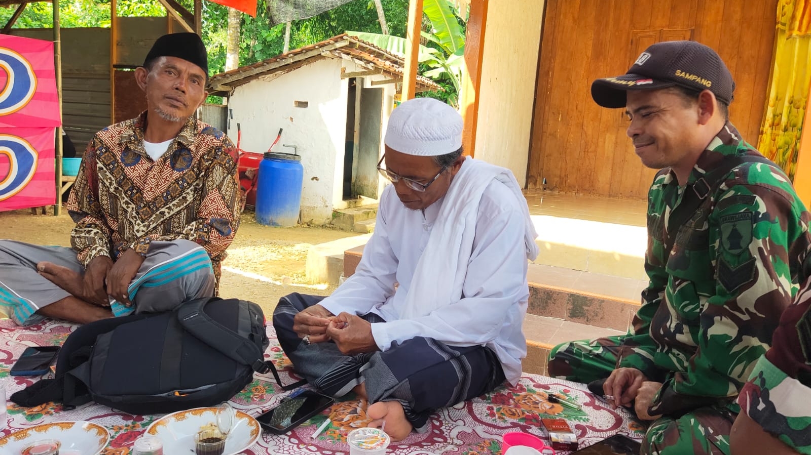 Kegiatan ini menjadi momentum yang tepat untuk mempererat tali silaturahmi antara aparat kewilayahan dengan masyarakat, khususnya di momen Lebaran yang identik dengan kebersamaan dan saling memaafkan. Dengan penuh kehangatan, Serka Halil berbaur bersama para tokoh agama serta warga, berbincang santai sekaligus menyampaikan pesan-pesan kebersamaan, kerukunan, dan pentingnya menjaga keamanan lingkungan.