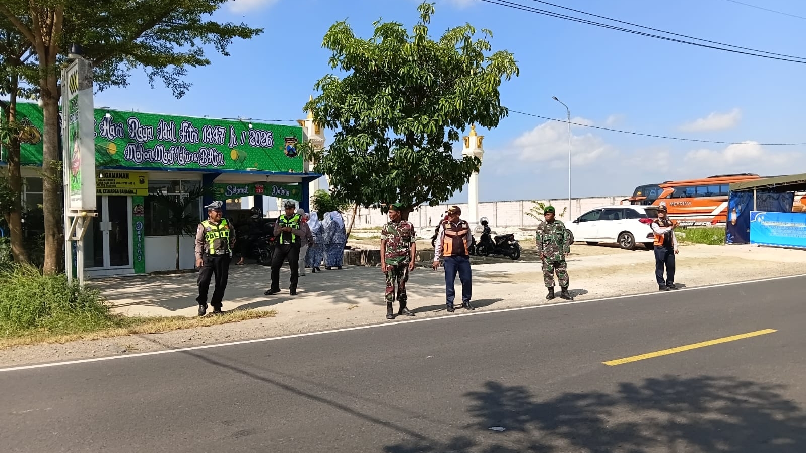 Sampang – Dalam balutan suasana Lebaran yang kian mendekat, sinergi antara aparat keamanan dan instansi terkait tampak begitu harmonis di Pos Pantau Lebaran Jalan Raya Jrengik, Kecamatan Jrengik, Kabupaten Sampang. Di tengah arus kendaraan yang mulai meningkat, Babinsa Koramil setempat, Serka Dwi, bersama personel Polsek dan Dinas Perhubungan, sigap melaksanakan pengamanan demi memastikan kenyamanan dan keselamatan para pemudik.