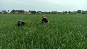 Sampang – Babinsa Koramil 0828/08 Sokobanah, Serda Muhsin, melaksanakan kegiatan komunikasi sosial (Komsos) sekaligus membantu warga membersihkan gulma atau rumput liar di area persawahan yang berada di Desa Bira Timur, Kecamatan Sokobanah, Kabupaten Sampang.