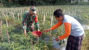 Sampang – Wujud nyata kepedulian terhadap ketahanan pangan terus ditunjukkan oleh Babinsa Koramil 0828/03 Omben, Serda Suyitno. Di tengah hamparan hijau tanaman cabai merah yang mulai merimbun, ia turun langsung ke ladang membantu para petani melakukan perawatan tanaman di Desa Omben, Kecamatan Omben, Kabupaten Sampang.