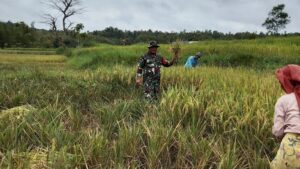 Sampang – Wujud nyata kepedulian terhadap ketahanan pangan nasional kembali ditunjukkan oleh Babinsa Koramil 0828/10 Kedungdung, Serda Parminto, yang turun langsung membantu para petani dalam kegiatan panen padi di Desa Pajeroan, Kecamatan Kedungdung, Kabupaten Sampang.