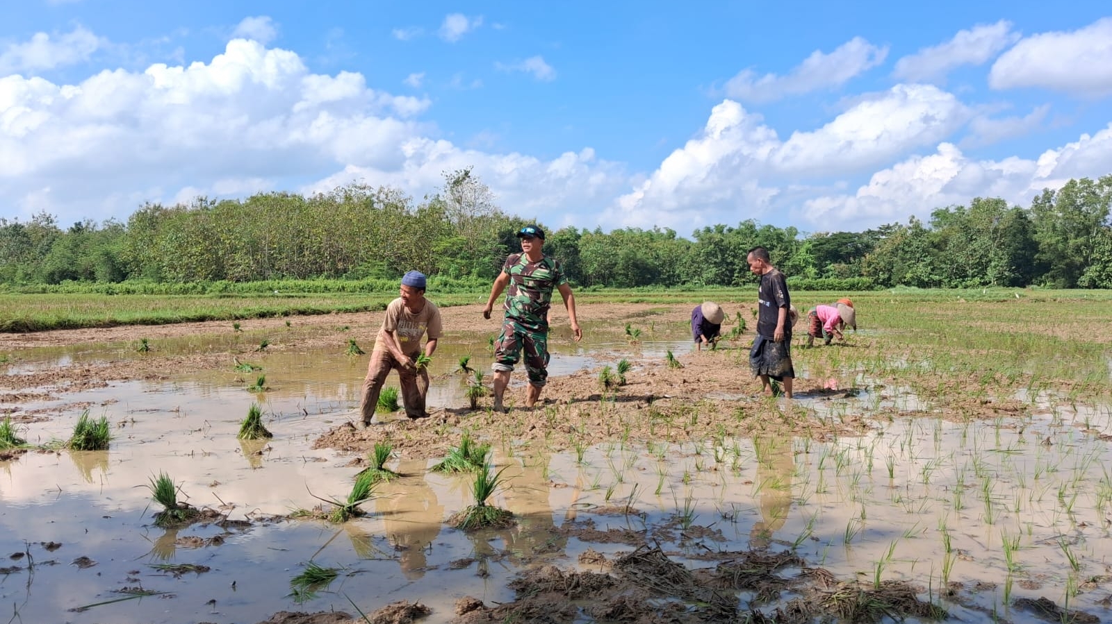 Sampang – Dalam semangat kebersamaan dan kepedulian terhadap ketahanan pangan, Babinsa Koramil 0828/10 Kedungdung, Sertu Gunarso, turut serta membantu para petani melaksanakan penanaman padi Musim Tanam (MT) ke-2 di Desa Rohayu, Kecamatan Kedungdung, Kabupaten Sampang.