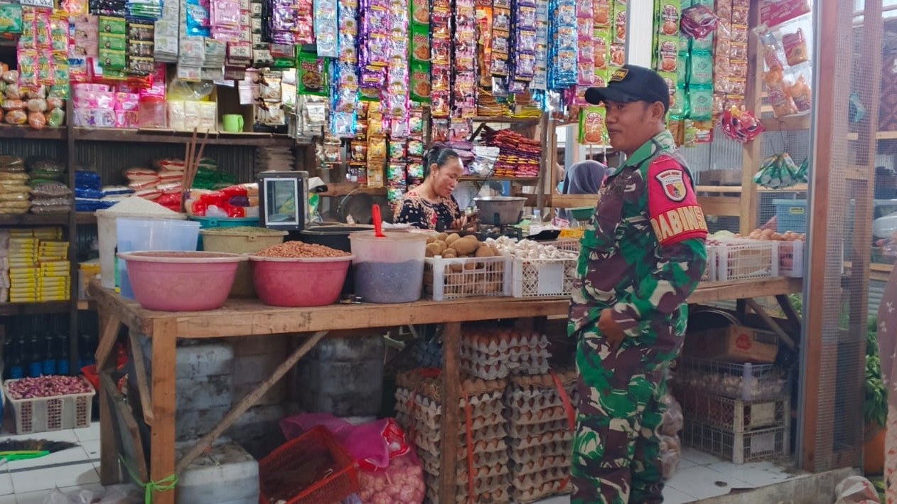 Babinsa Pangarengan Turun Langsung ke Pasar, Pastikan Harga Sembako Tetap Stabil