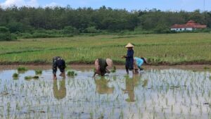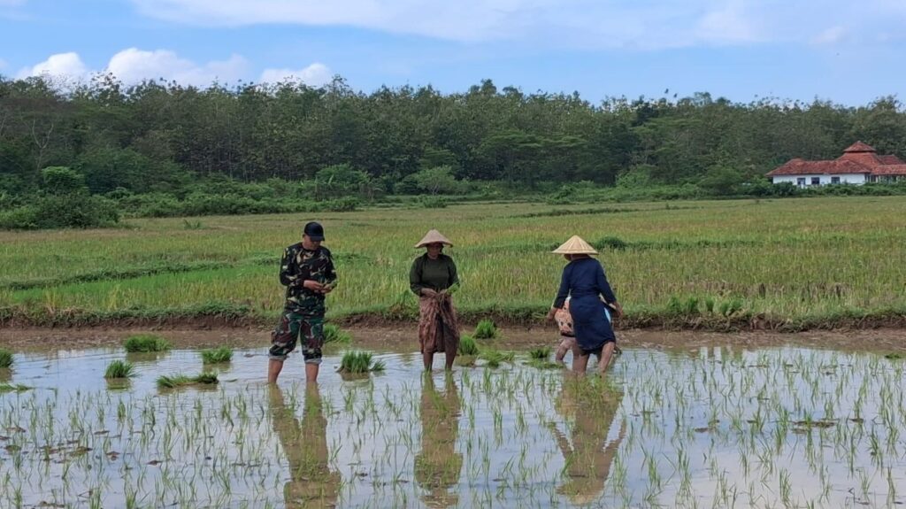 Sampang – Dalam upaya mendukung program ketahanan pangan (Hanpangan), Babinsa Koramil 0828/10 Kedungdung, Sertu Gunarso, turun langsung ke sawah membantu warga menanam padi di Desa Rohayu, Kecamatan Kedungdung, Kabupaten Sampang.