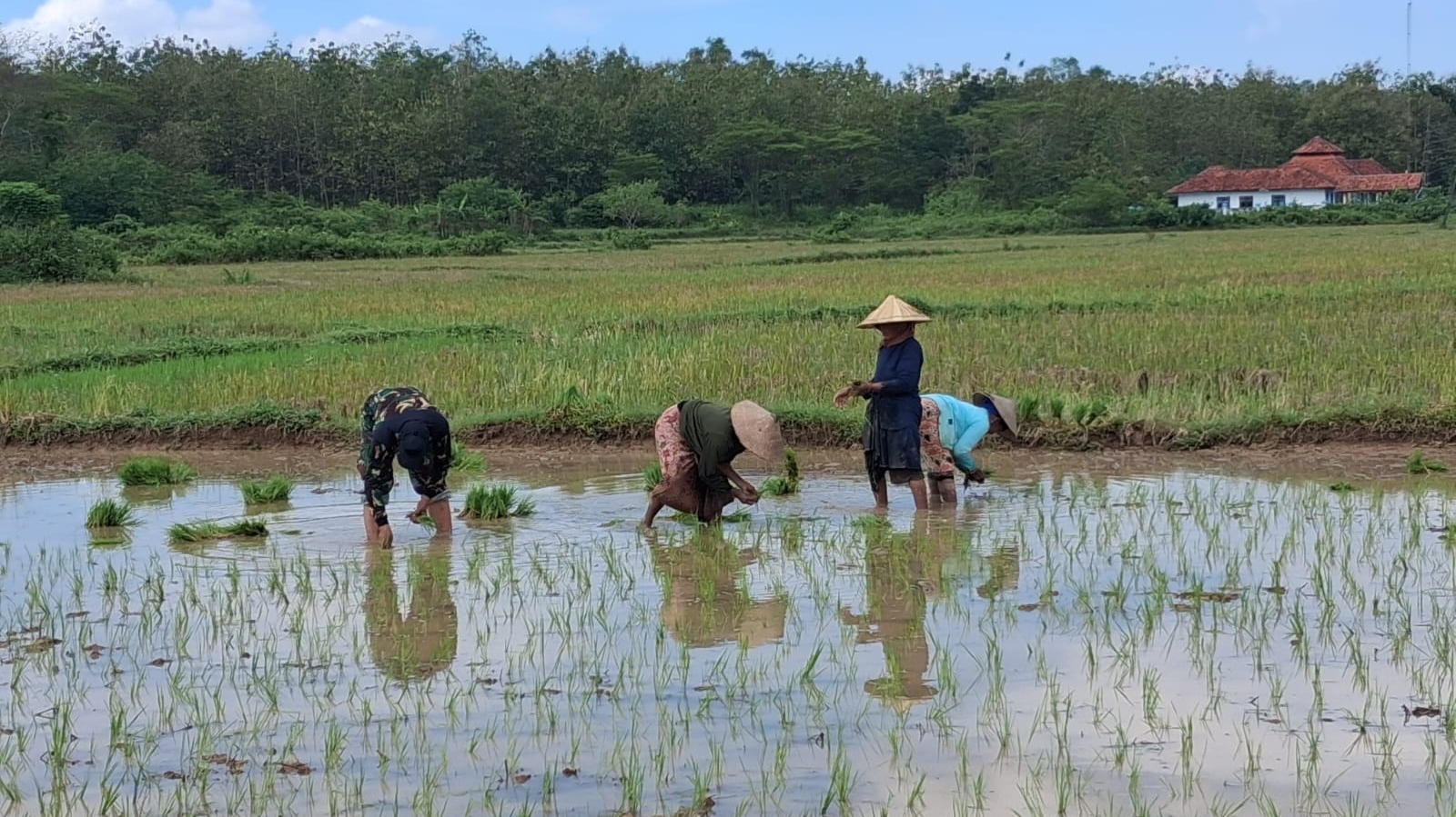 Babinsa Kedungdung, Sertu Gunarso Bantu Warga Tanam Padi dukung Ketahanan Pangan